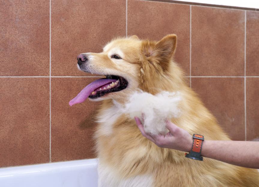To prevent dog hairballs, avoid letting your pup lick/chew at their haircoat too much. Keep them from overgrooming other dogs or cats in the household as well.