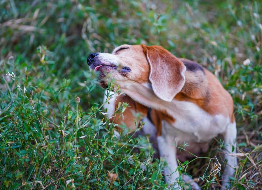 Warm weather outside means environmental allergens are plentiful. Dogs with allergies have uncomfortable symptoms like itching and watery eyes.