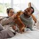 The overall body posture of a relaxed dog will be soft and wiggly. Some of the dog’s movements might be overexaggerated, especially during play.